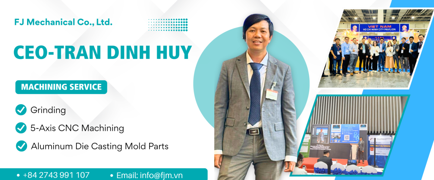 Mr. Tran Dinh Huy – After spending 10 years living and working in Japan, he returned to Vietnam in 2016 to establish FJ Mechanical Co., Ltd., a company specializing in precision machining. With a strong technical background gained in Japan and a modern management mindset, Mr. Huy built FJ from the very beginning and has led the company toward continuous growth and development.